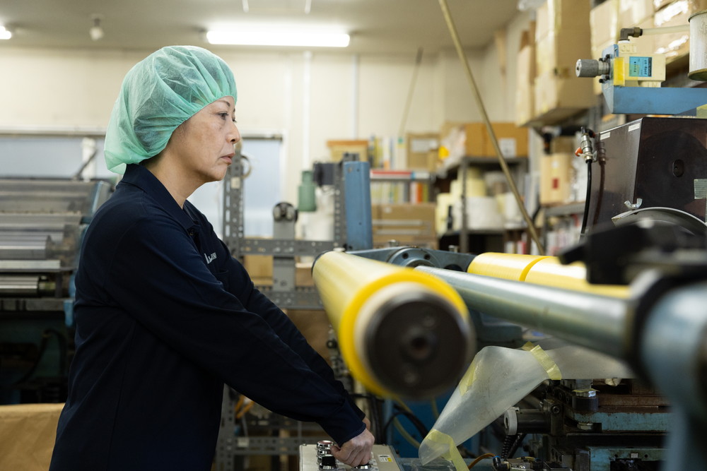 材料や粘着剤の特性に合わせて製造条件を整え、手順の遵守と確認を徹底。日々の安定した運用によって、品質のばらつきやトラブルの発生を抑えています。